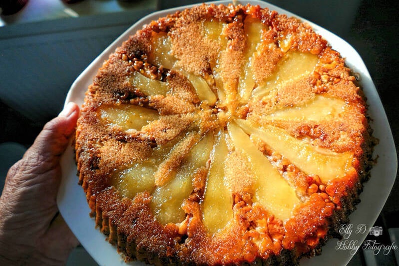Besprenkel met citroensap. Leg de parten peer met de bolle kant naar beneden in de vorm.
