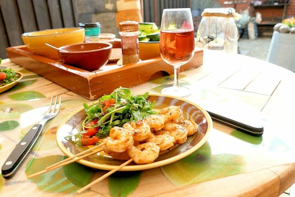 Lekker een salade erbij en een glas rose buiten in het zonnetje ...het is toch genieten.