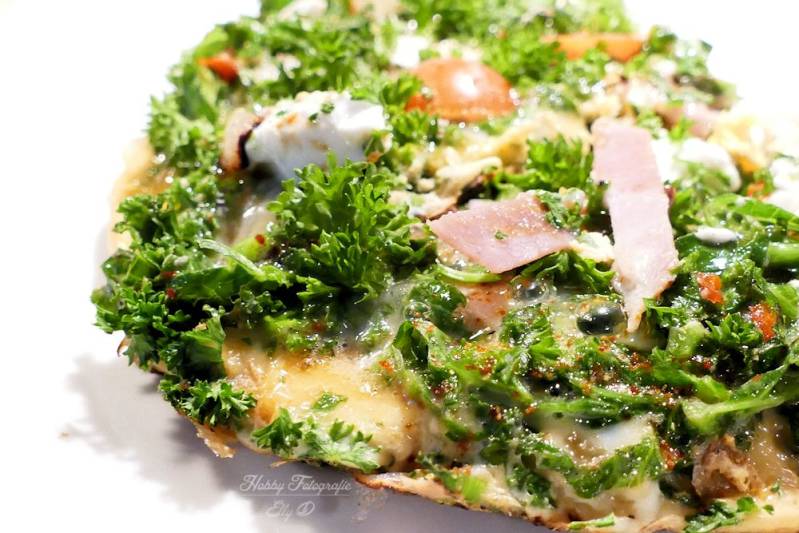 En dan genieten van een lekkere lunch ;veel groente en het vult goed.