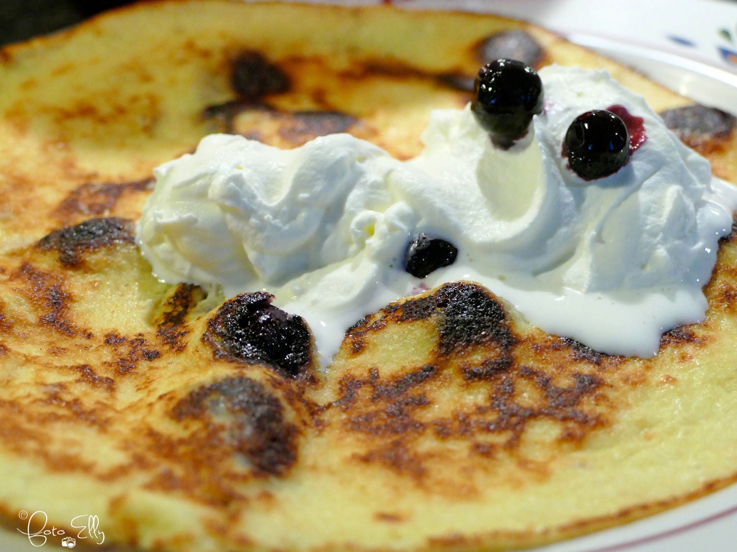 Nu heb ik voor een tweede keer pannenkoeken gemaakt van amandelmeel,en het smaakte een stuk beter ,met slagroom en bosbessen..iets minder melk,beetje dikker beslag gemaakt