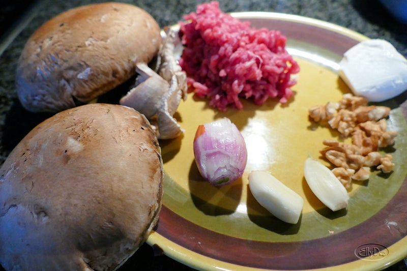 We gaan de paddestoelen vullen met het gehaktmengsel
