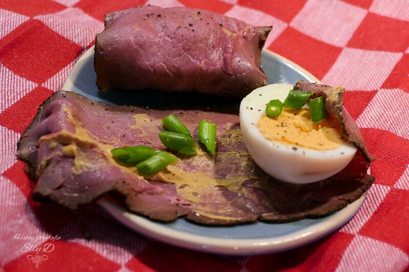 Op de rosbief wat lenteui ringetjes, en de rosbief om het ei rollen.