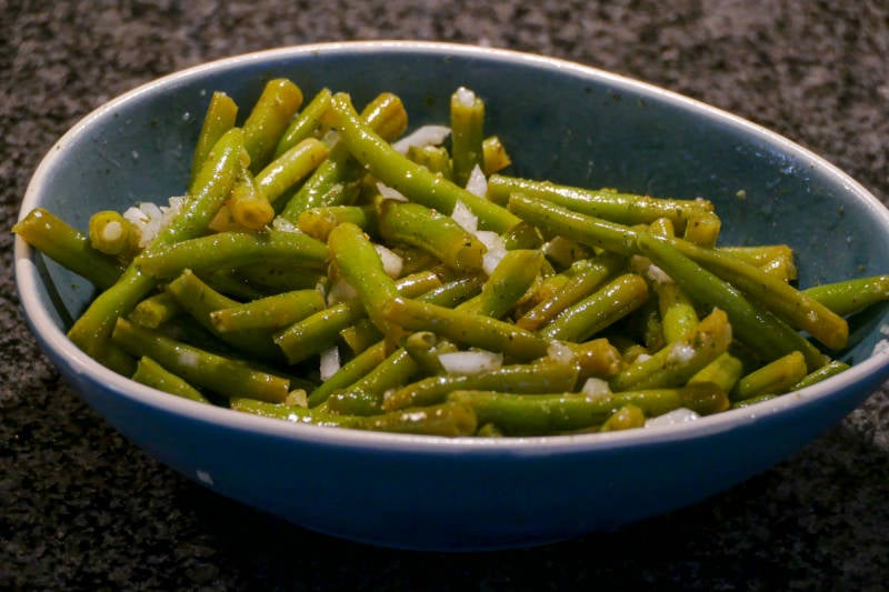 Alles bij elkaar met de ui over de boontjes en zet het een dagje afgedekt in de ijskast