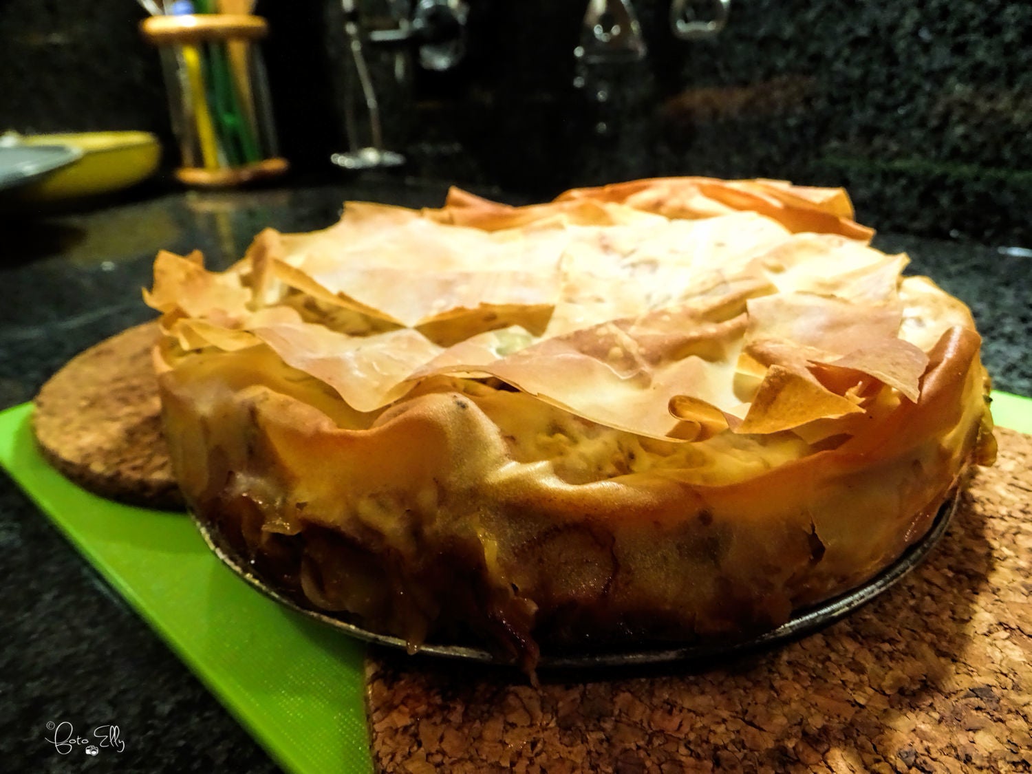 Tijdens het bakken leg je de filodeeglapjes in de springvorm,