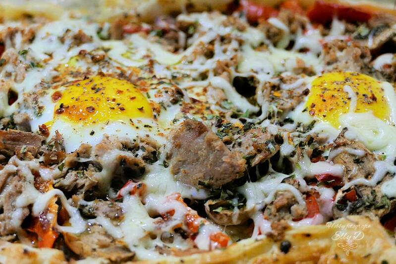 Nog voor 5 a 10 min. de oven in..Mozzarela is dan net gesmolten en op zijn lekkerst en het ei gestold