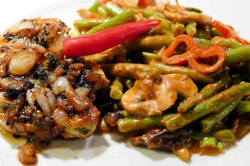 lekker stukje vlees erbij wij hadden een varkensfiletlapje lekker mals bereid.