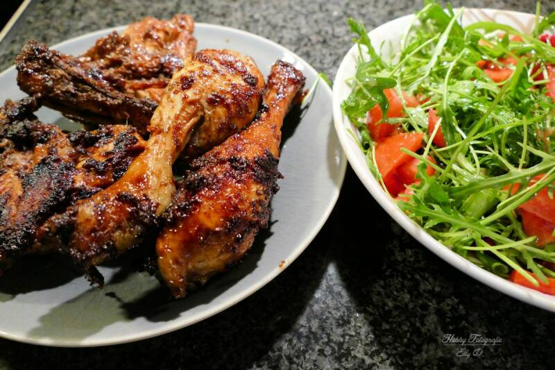 De kip is klaar en gaar het ruikt lekker we gaan aan tafel