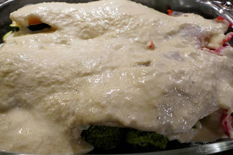 Veel groente, lekkere kabeljauw, een heerlijke saus die ook van groente is gemaakt