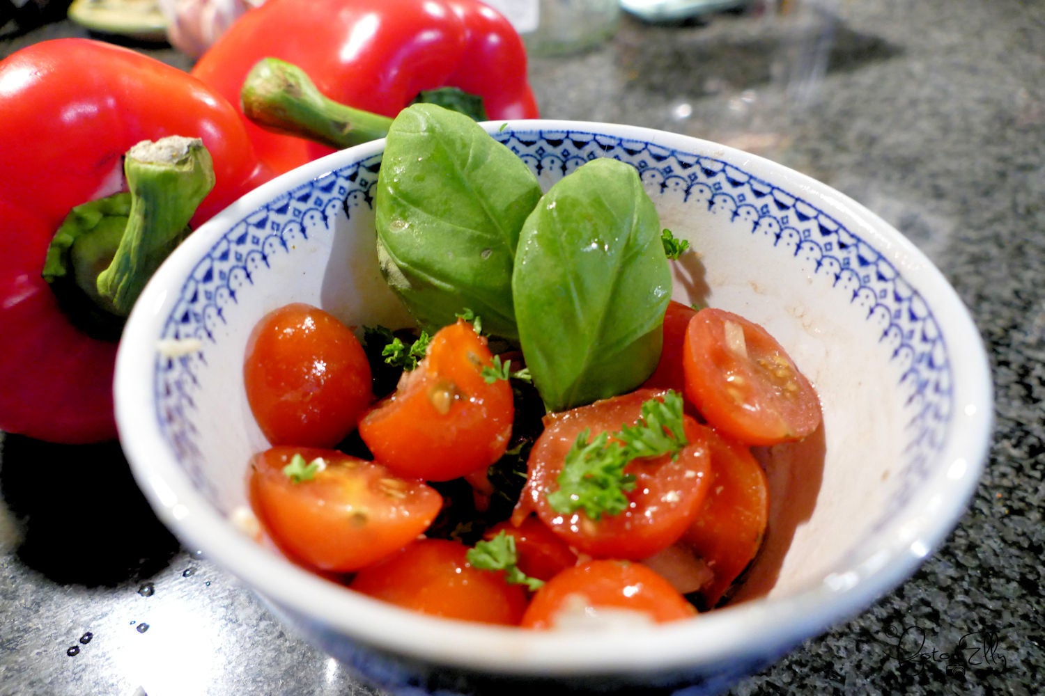 Eerst maken we een tomatensaus een hele eenvoudige, ook maar een