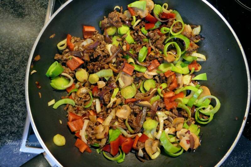 Veel groente er in pitig gehakt een volwaardige maaltijd