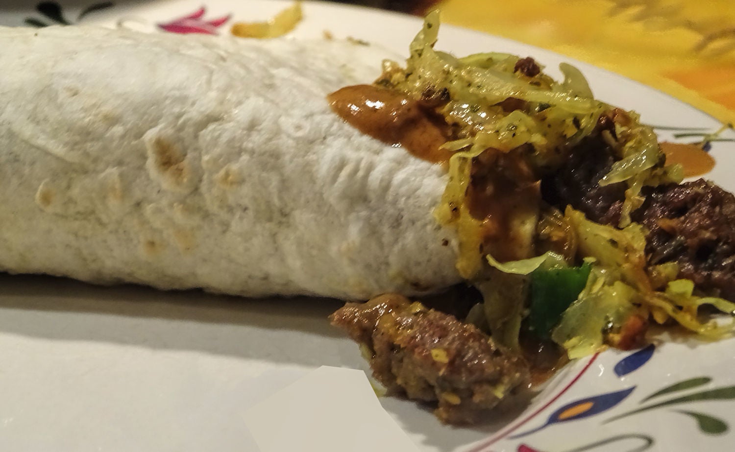 Als de spitskool gaar is het vleesmengsel er doorheen scheppen en de lenteui erover strooien.