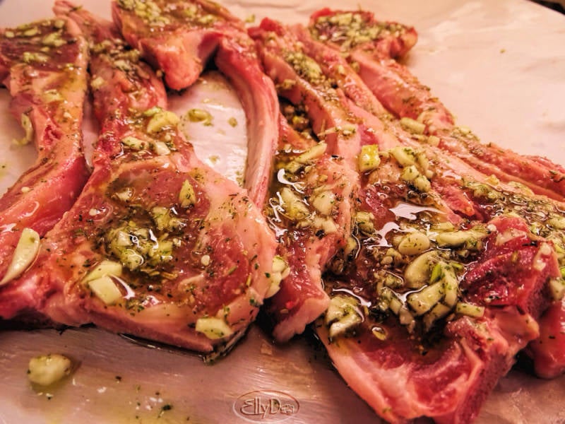 Alles bij elkaar mengen en de lamskoteletten er goed mee bestrijken