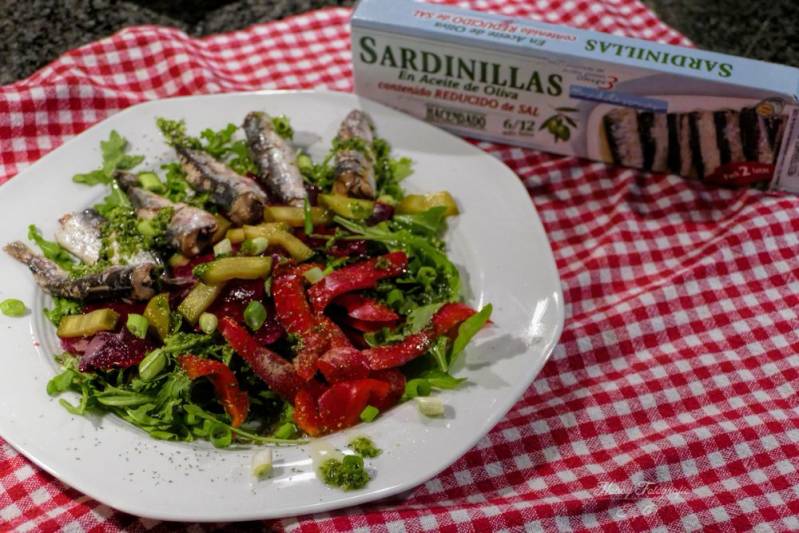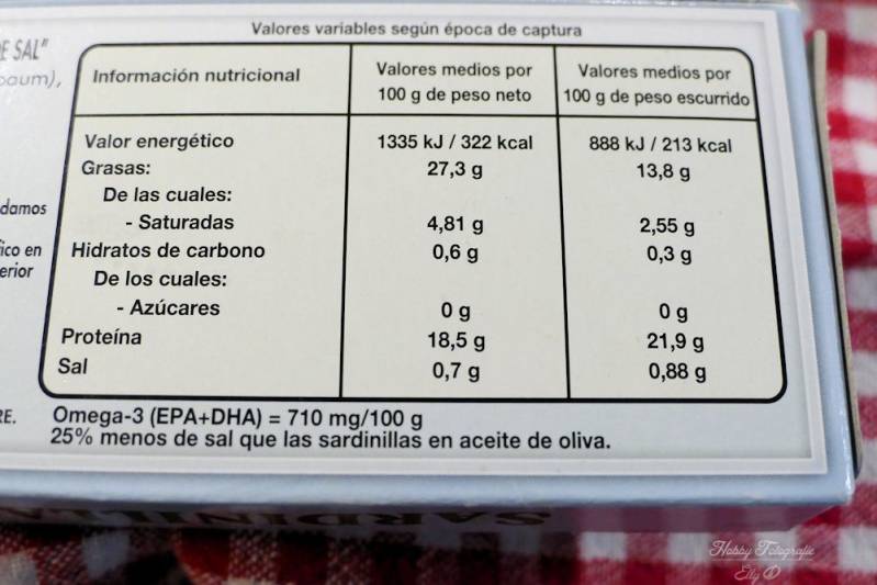 blikje sardinella`s,deze heeft minder zout ik heb een hele voorraad meegenomen uit Spanje