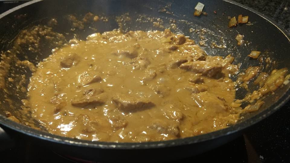 3 eetlepels pindakaas er bij en doorheen roeren