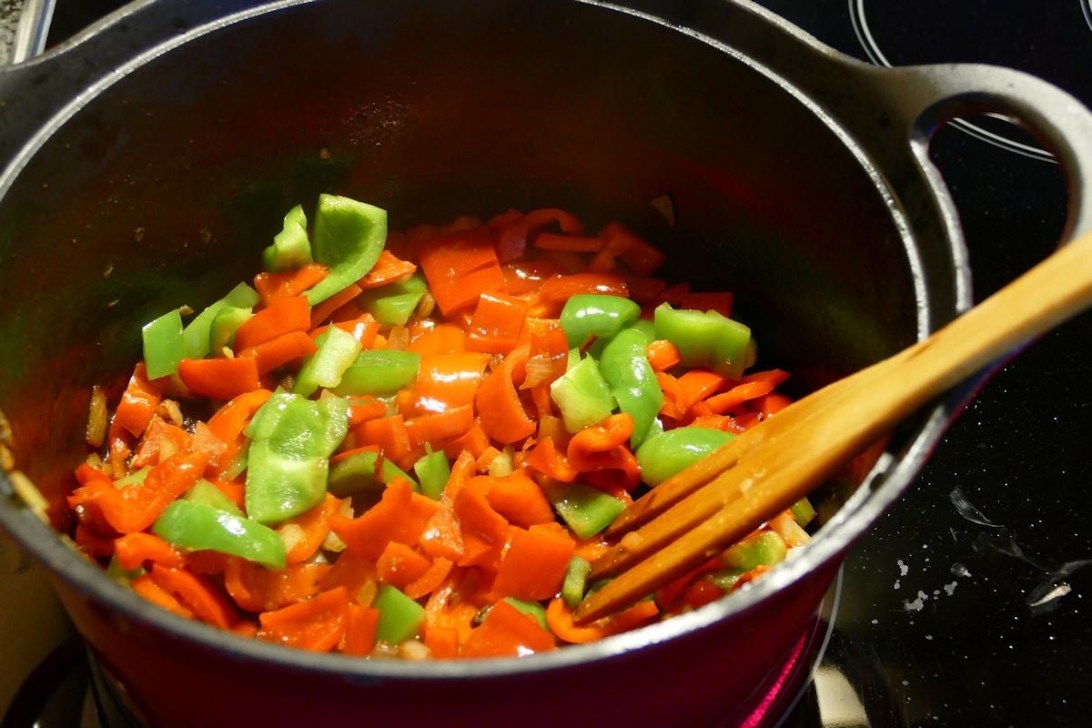 Je kunt nu even kijken of er genoeg bouillon bij is anders nog wat bouillon er bij doen.