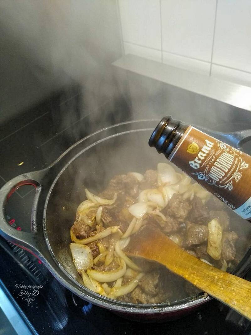 Uien weer erbij bier erbij bouillon en alle kruiden.