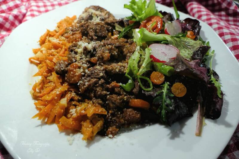 Het smaakte verder heel goed nog een salade erbij en wat geraspte kaas erover