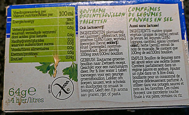 bouillontabletten iets meer zout er zijn 3 soorten.