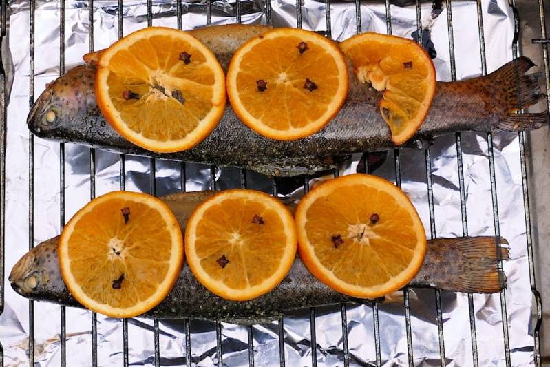 De forellen ruiken heerlijk en zien er goed uit ...ze zijn klaar