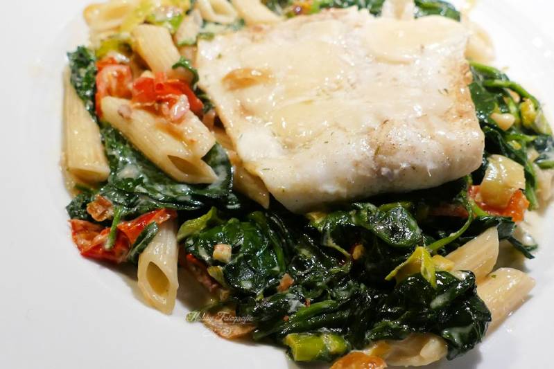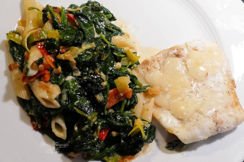 Ik zou zeggen eet smakelijk..geniet van je romige groente visgerecht met een beetje pasta