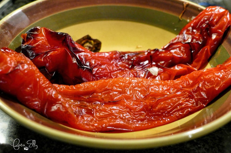 Gemengde sla erbij een zoete aardappel en een gegrilde paprika uit de oven.
