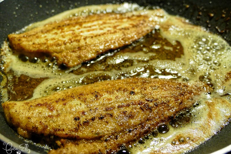 Roomboter in de koekenpan en de vis aan beide kanten bruin bakken in een paar minuten. Tong heeft zo`n verfijnde smaak daar hoeft niet veel bij peterselie erover en klaar.