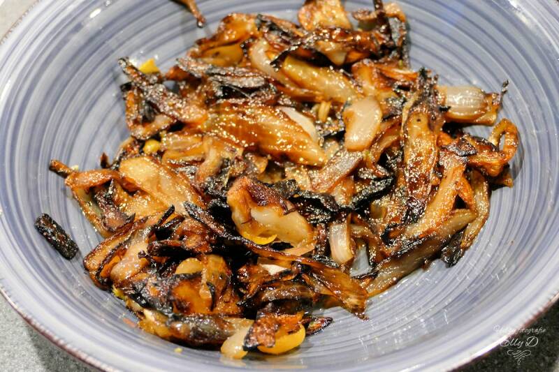 Lekker met rijst en gekaramaliseerde uien ...ik deed er dit keer zwarte knoflook bij..erg lekker