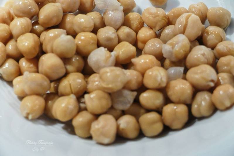 Kikkererwten uit blik draaien we om in de zeef en spoelen we goed met koud water ,het meeste zout is er nu uit.